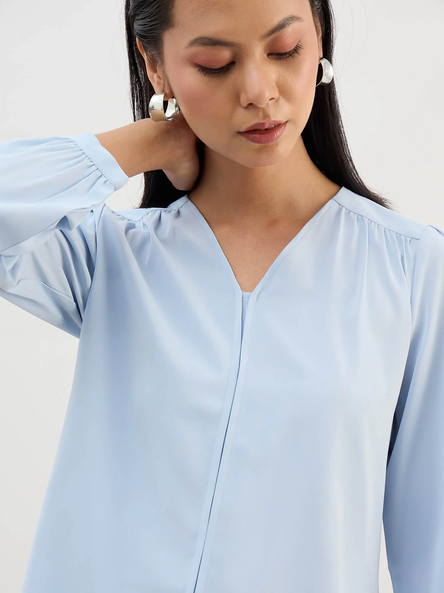 - Gathered detailing at the front and back yoke for added dimension