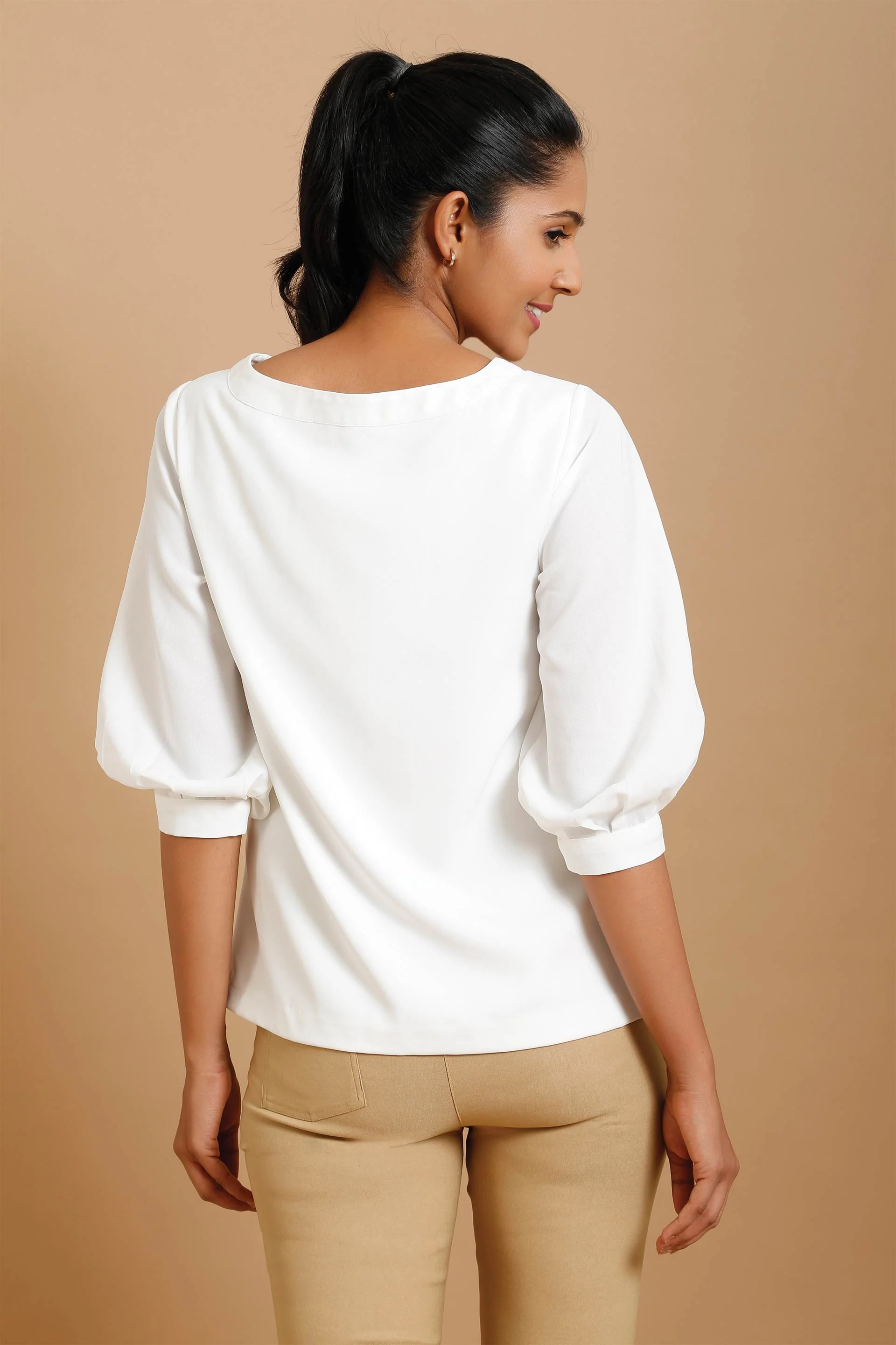 Turn to Coconut when you need to add a dash of style to your everyday look. With set neckline and pleated lantern sleeve, this top is perfect for layering and also to wear as is. Pair it with slim black pants and heels to complete your day look or pair it with colorful pants or skirts for a glamorous evening look. Color May Vary Slightly Due To Screen Settings.