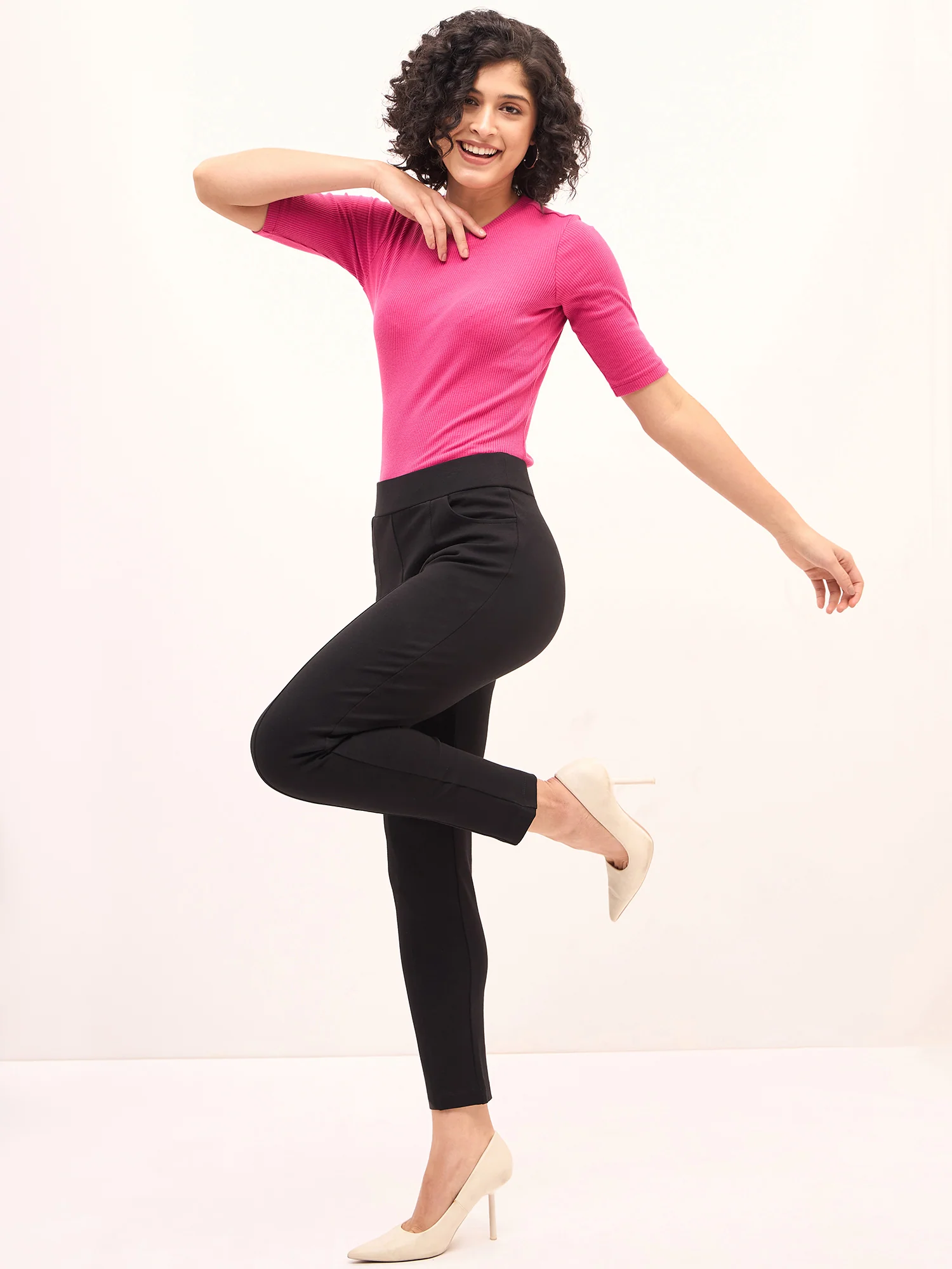 Discover round-the-clock comfort and style with our Flex Pull On Slim Jeggings in black. Made with soft and breathable viscose rayon, these women's pants feature a convenient slip-on design and a slim fit for a flattering look. Perfect for casual and high-end occasions alike, these solid black trousers are a versatile addition to your wardrobe.