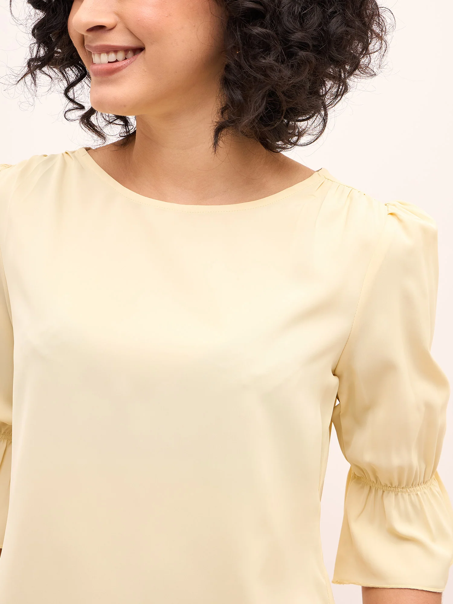 Lemon Sherbet Boat Neck Top - Light Yellow