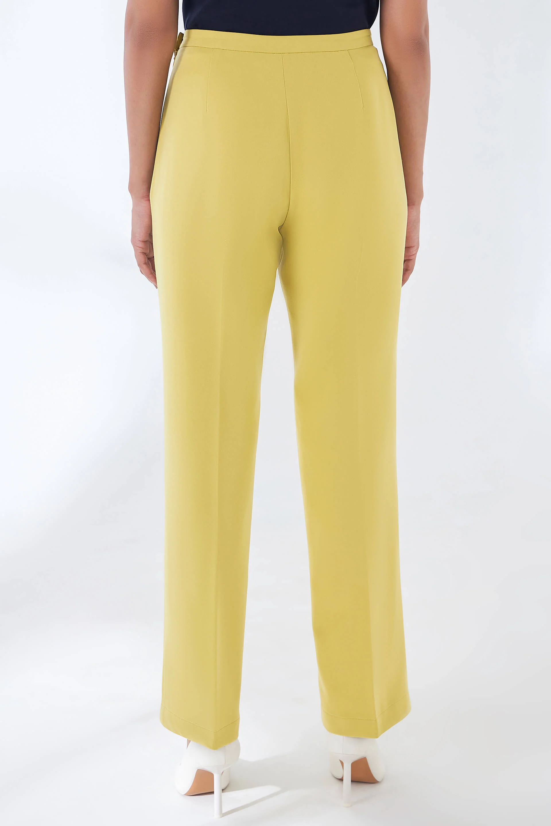 A thoughtfully tailored, mid-rise pair of pants in a striking chartreuse hue