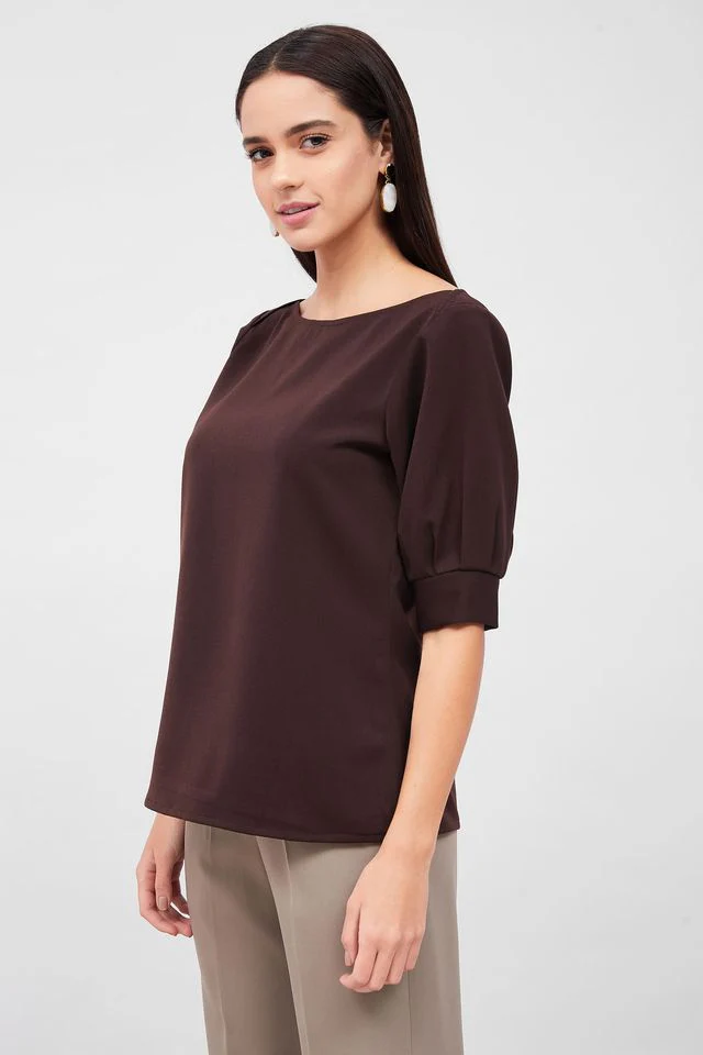 Mocha Pleated Sleeve Top - Brown