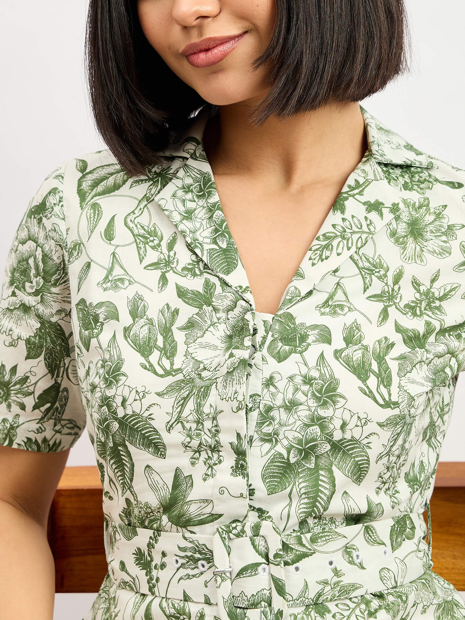 -70%Pinnaca Floral Shirt Dress - Olive—
