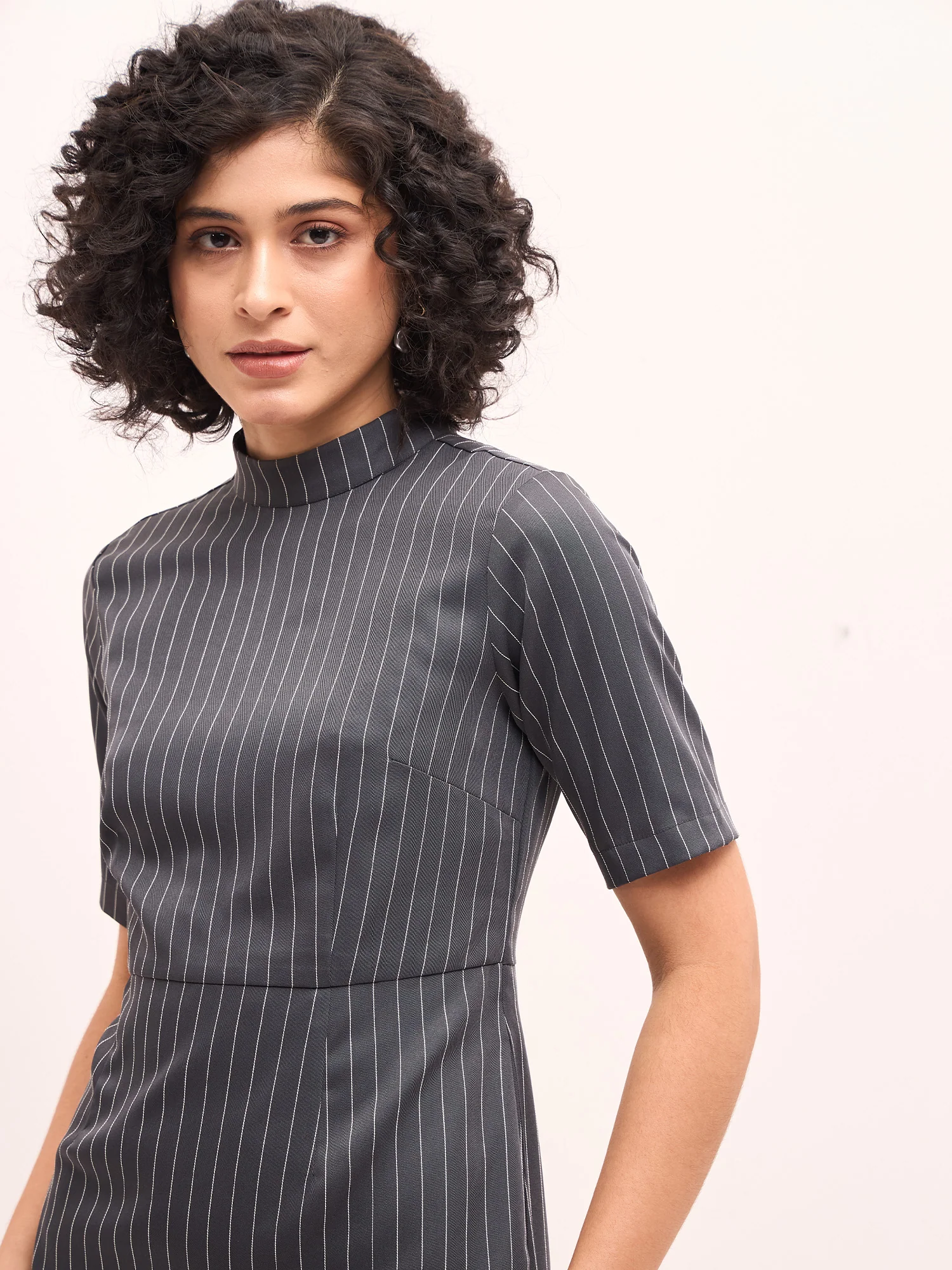 -70%Steel High Neck Sheath Dress - Grey/White—