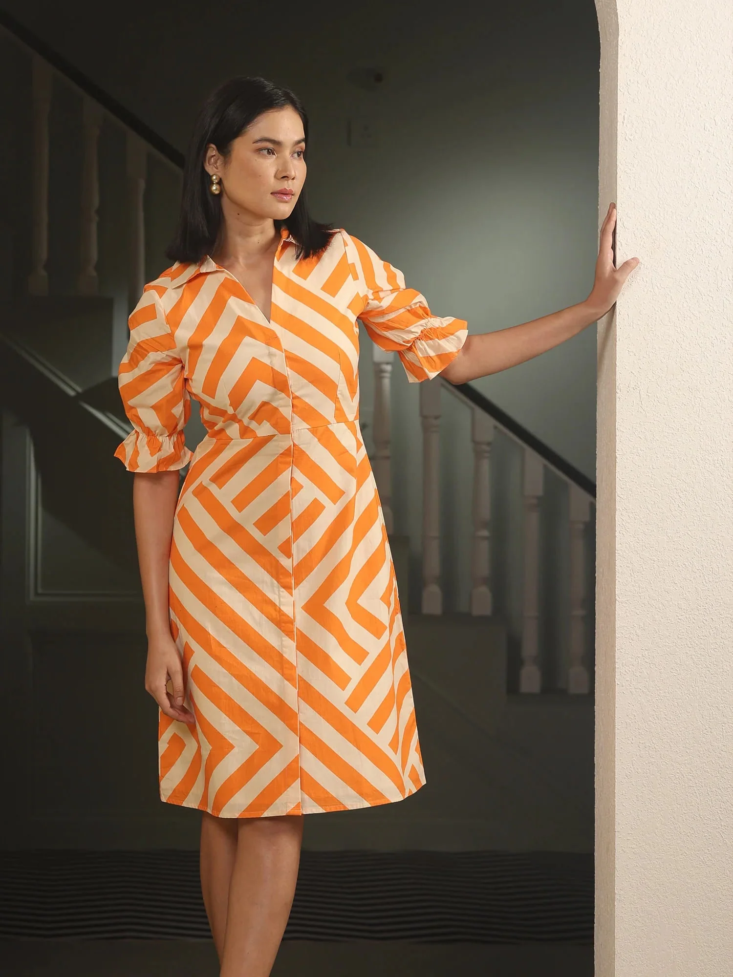 -70%Tangy Bold Stripe Dress - Orange—
