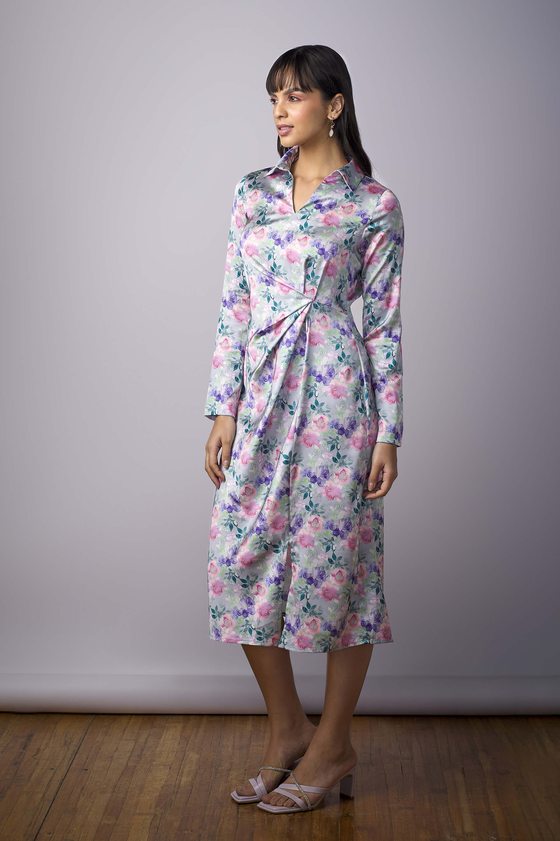 Toni Floral Draped A-Line Dress - Multicolor